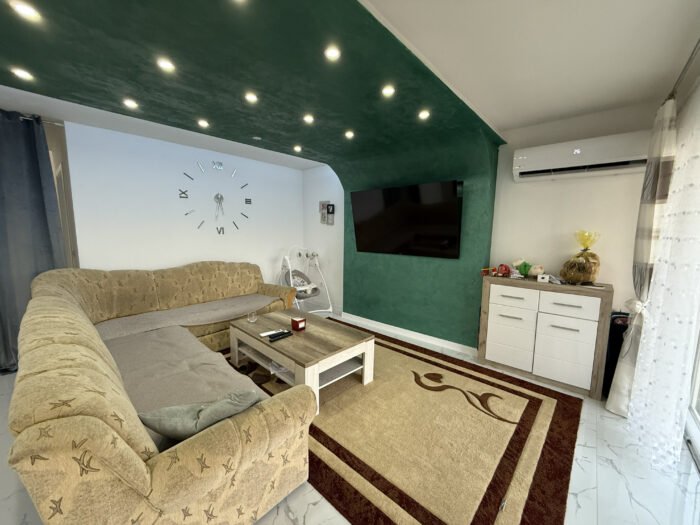 U dnevnom boravku, kuhinji i trpezariji je urađeno podno grijanje,a podna obloga je keramika, dok su otvori, veliki stakleni portali sa kliznim vratima gdje kad izađete na balkon panoramski pogled na grad, bukvalno "puca".