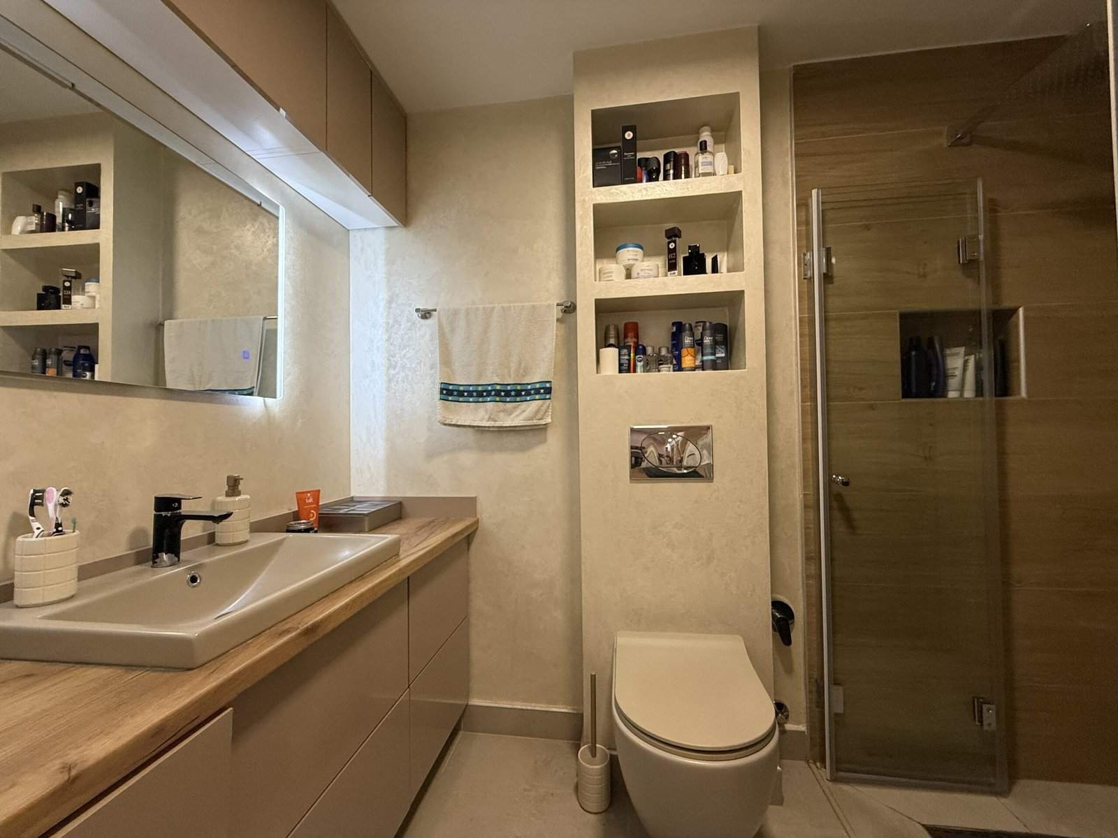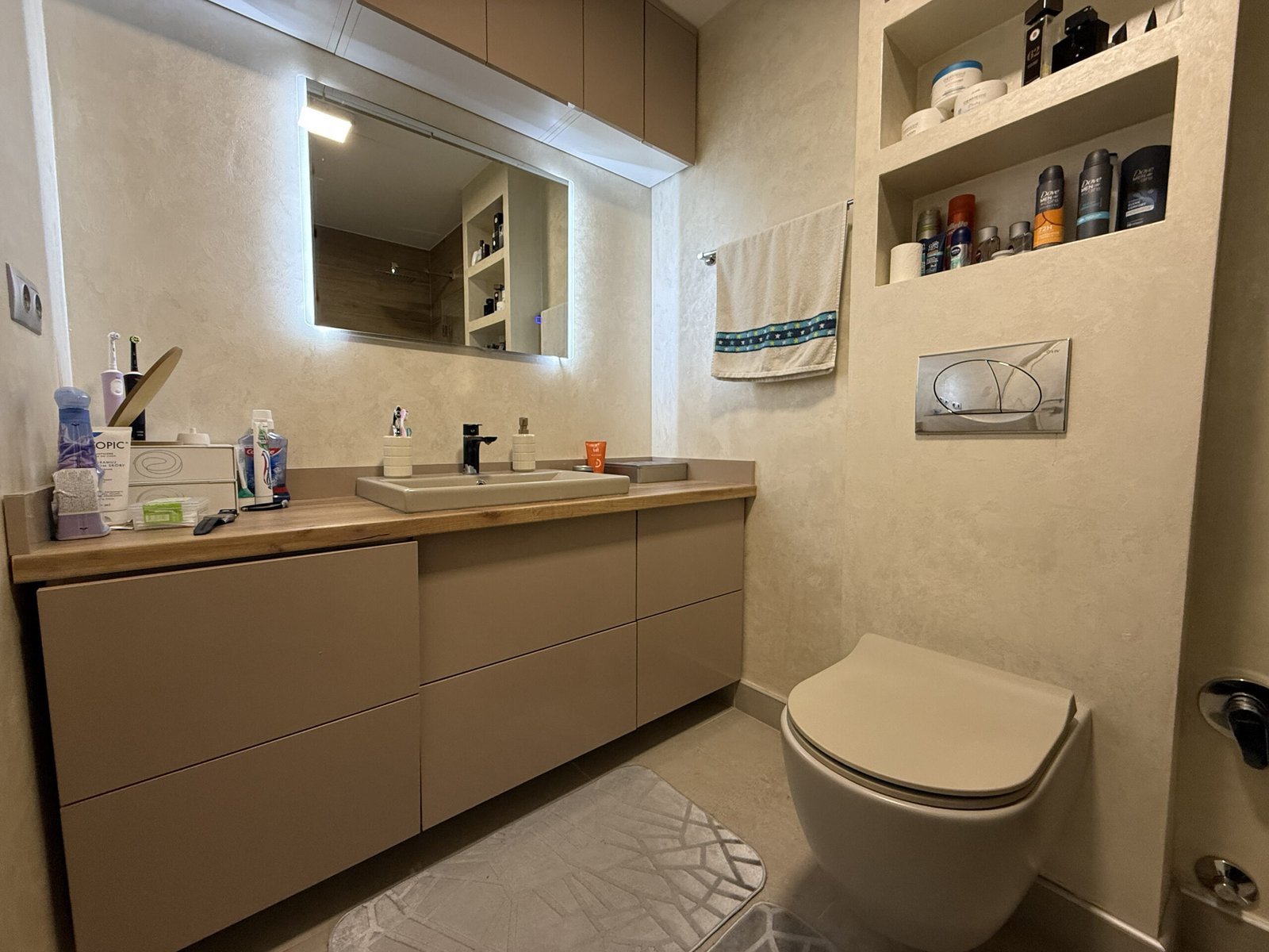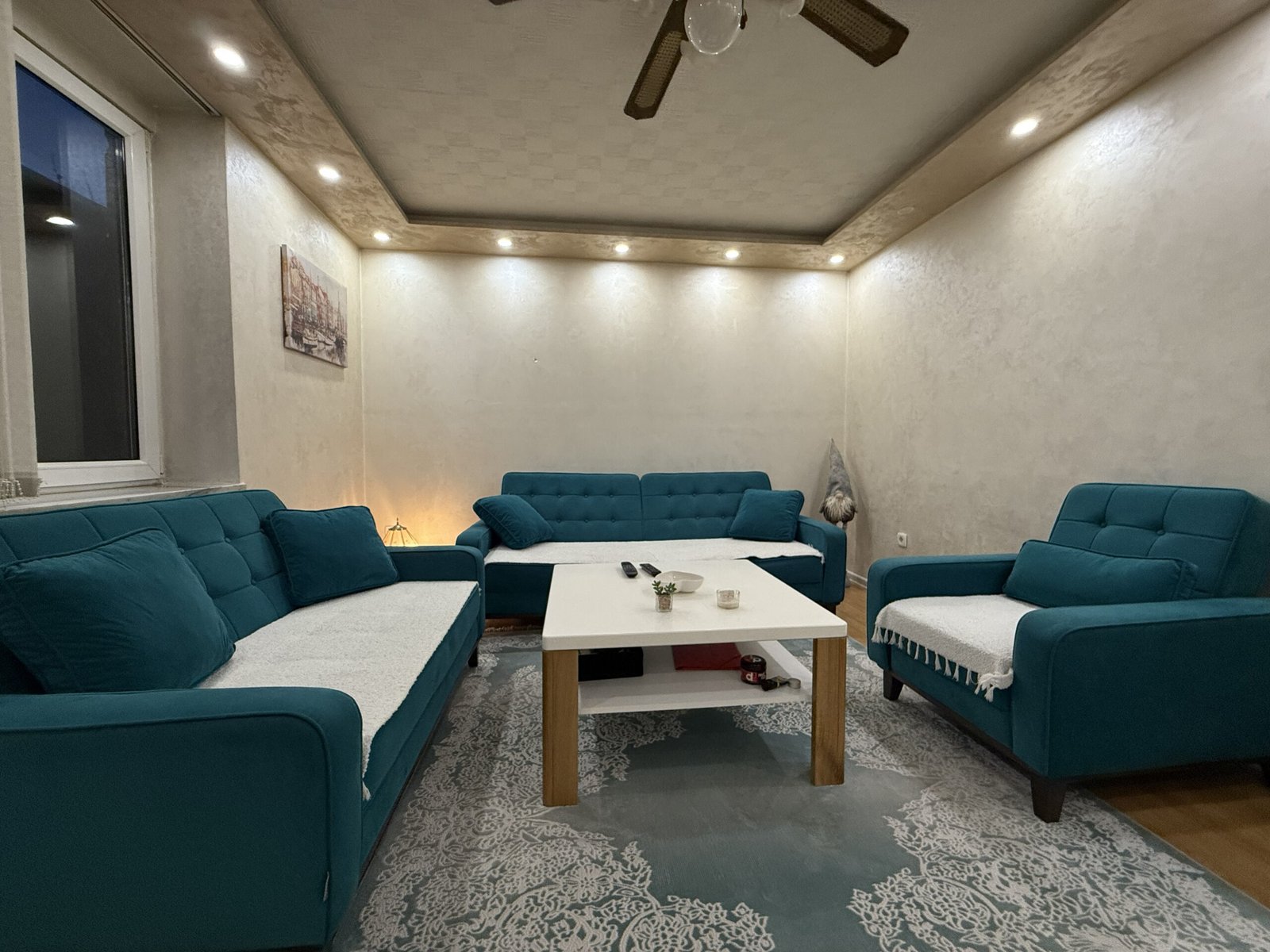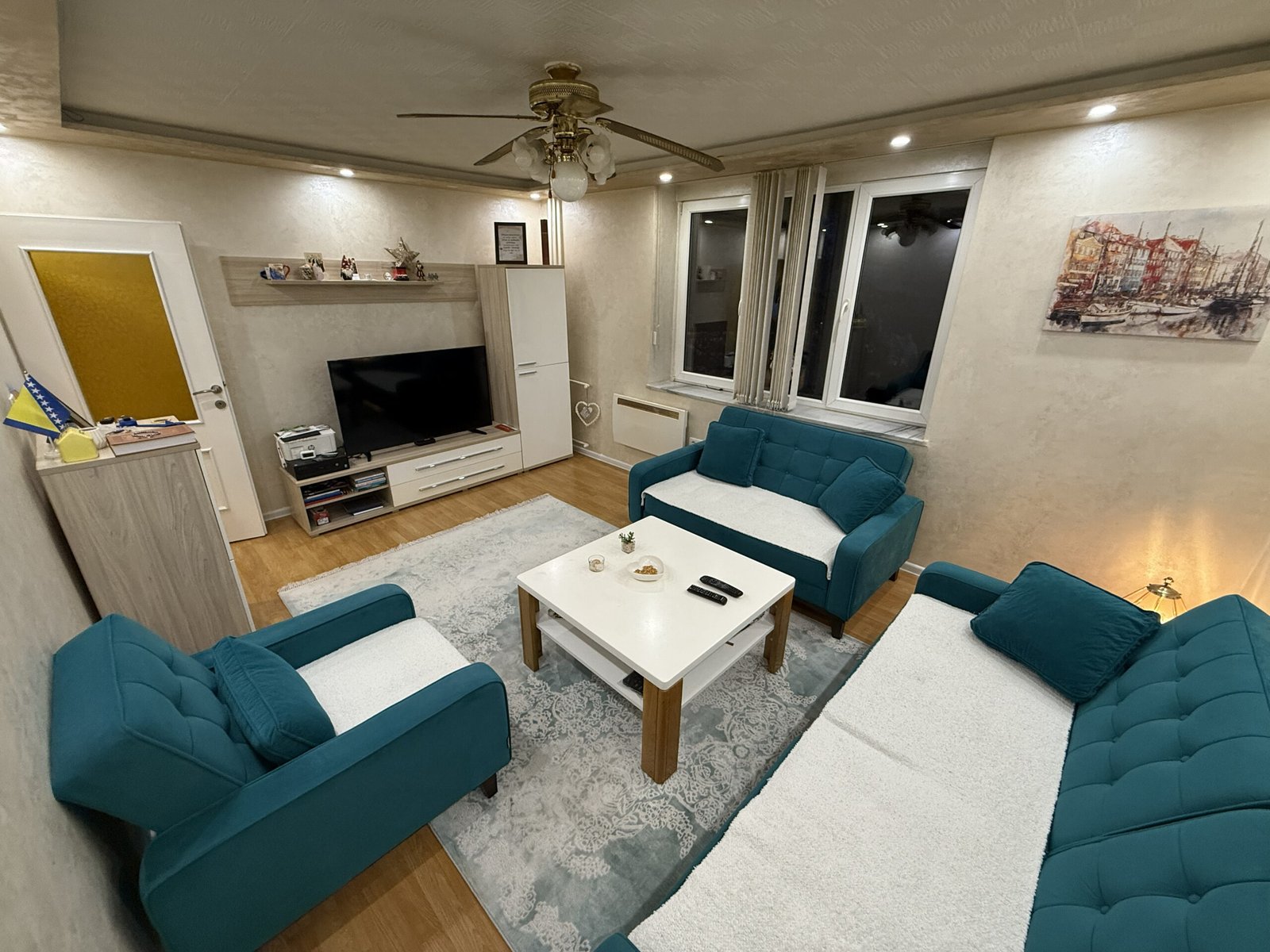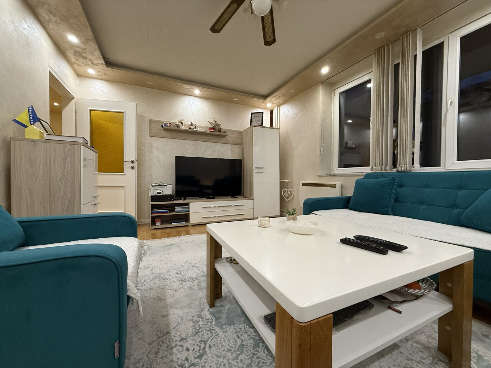 U dnevnom boravku je urađena dodatna izolacija na zidovima sa unutrašnje strane, kao i led rasvjeta sa spuštenim dijelom stropa, što je dodatno estetski uljepšalo prostoriju i dobila se ta doza topline doma.