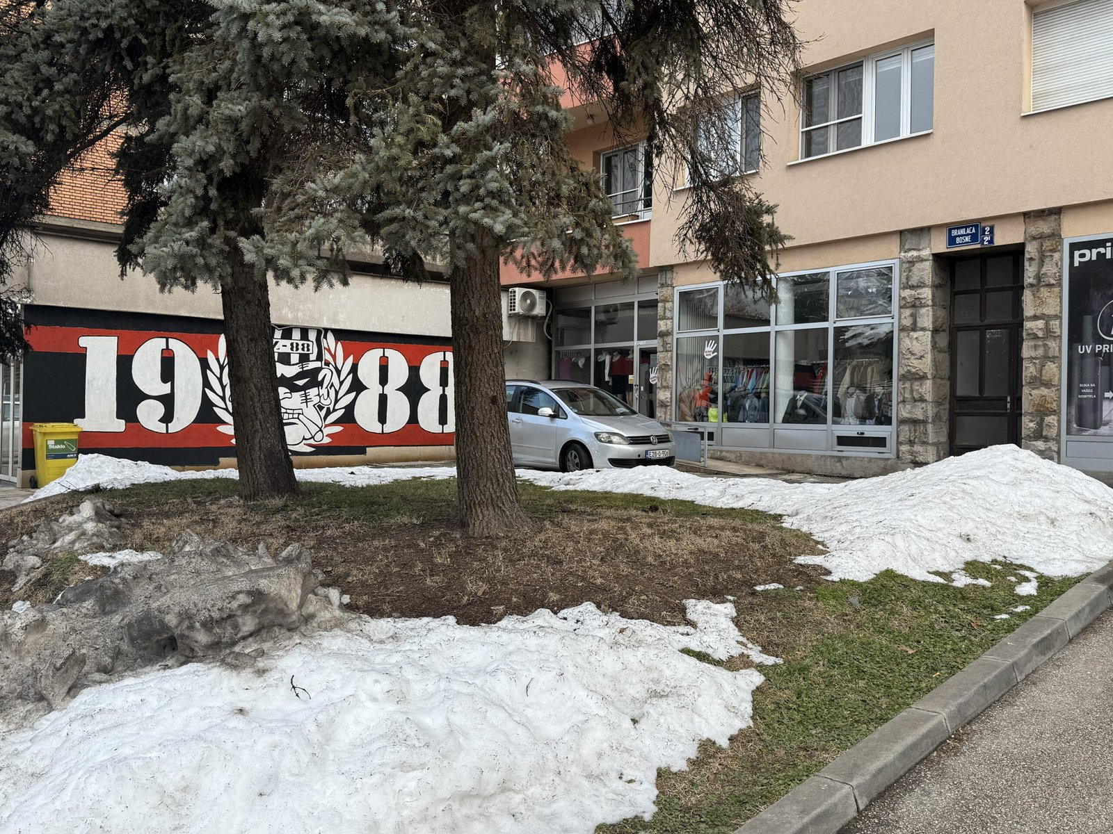 Prostor se sastoji od tri prostorije i mokrog čvora i gleda direkt na glavnu ulicu.
