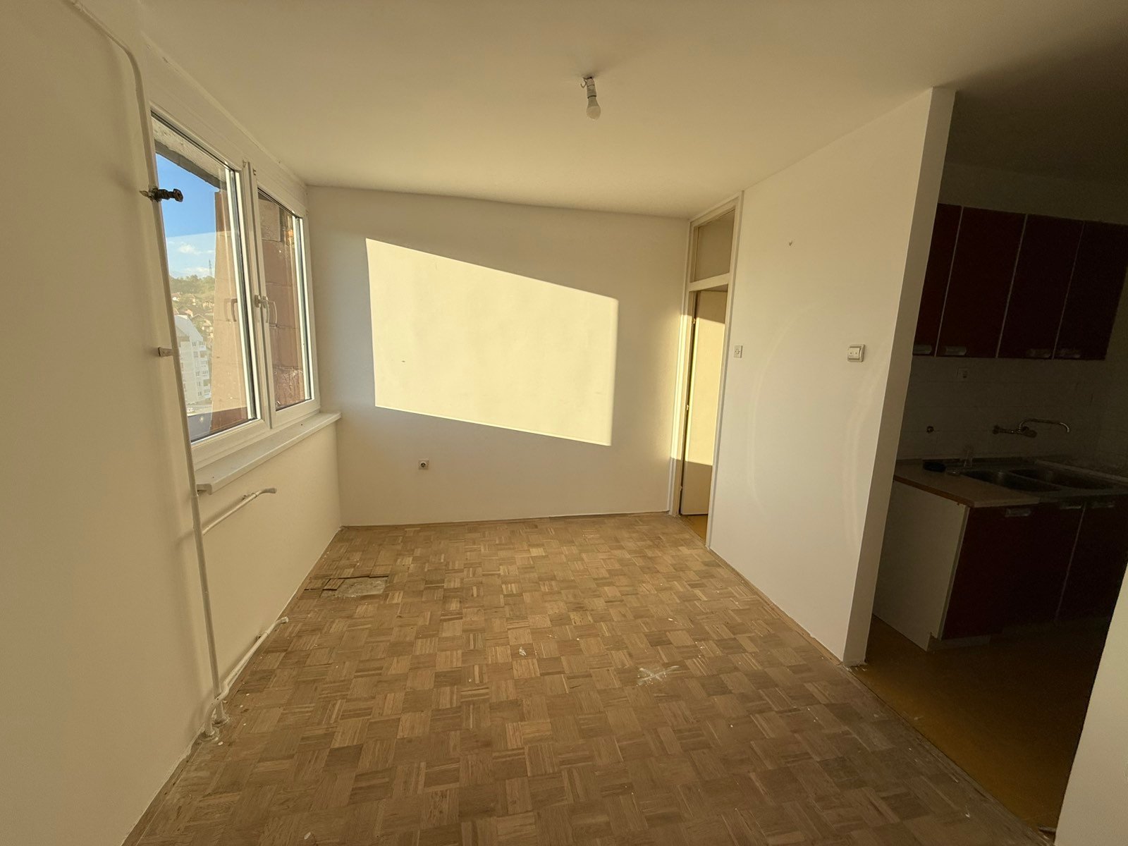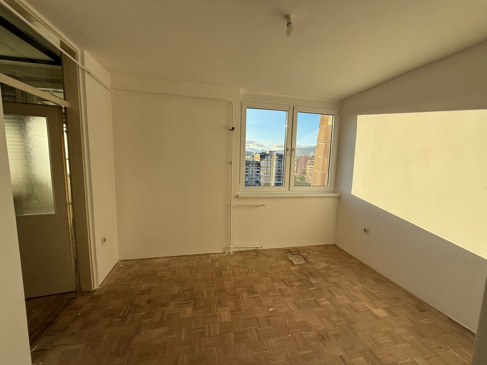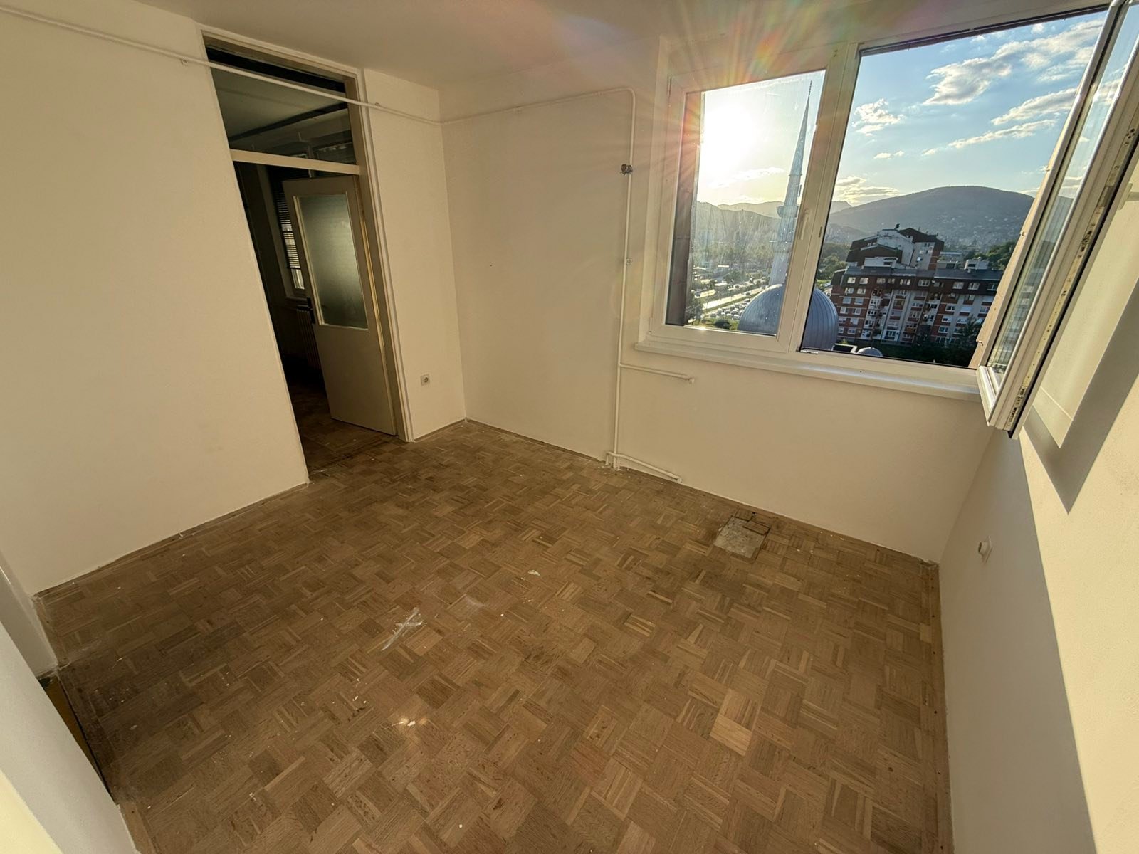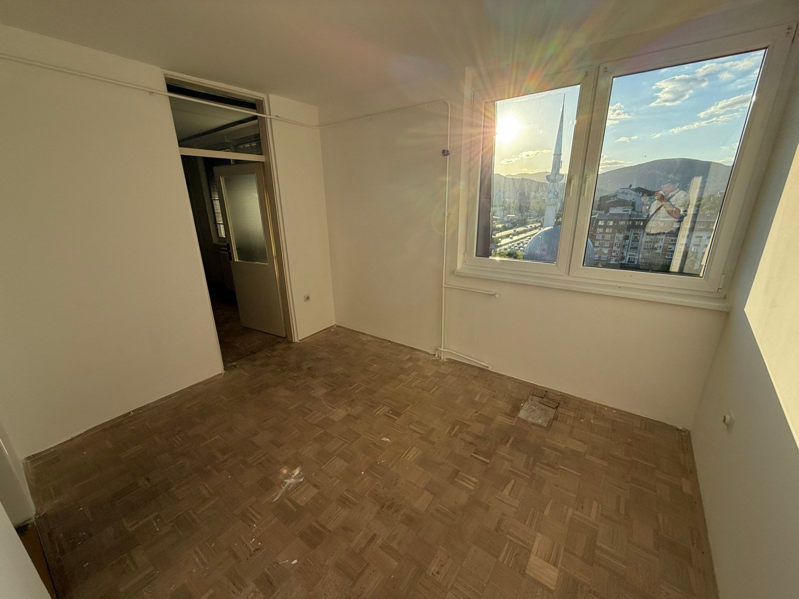Stan je potrebno renovirati, a isti ima izuzetno lijep i funkcionalan raspored a sastoji se od ulaznog hodnika, komfornog kupatila, kuhinje sa velikom trpezarijom koju je moguće pretvoriti u spavaću sobu, te velikog dnevnog boravka sa izlazom na balkon koji gleda na džamiju.